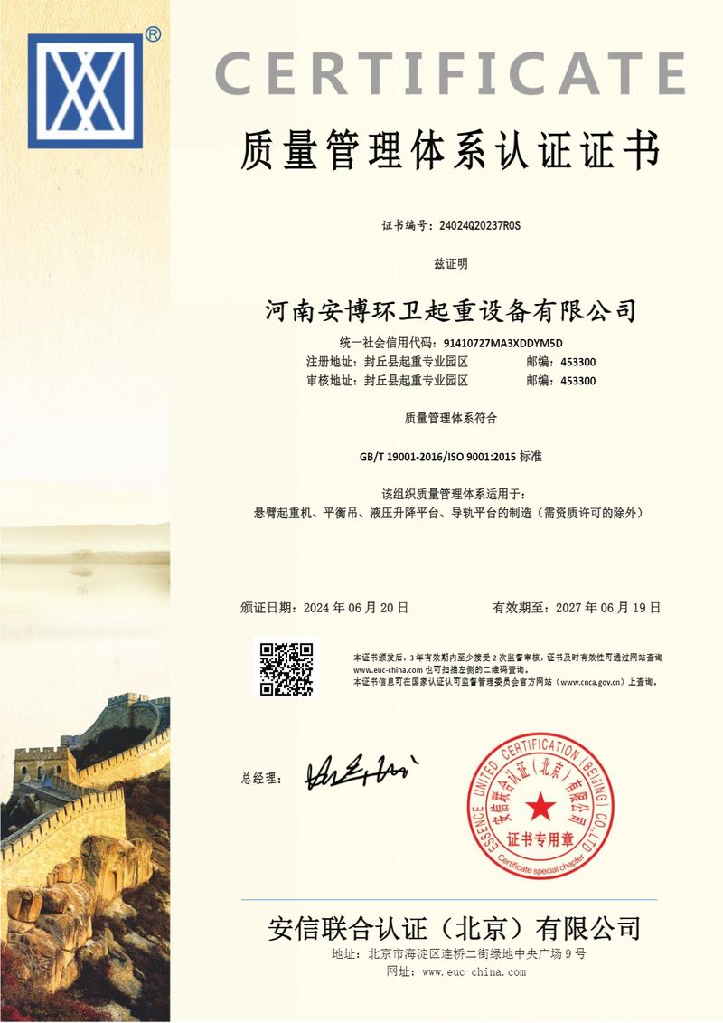 質(zhì)量管理體系認證證書