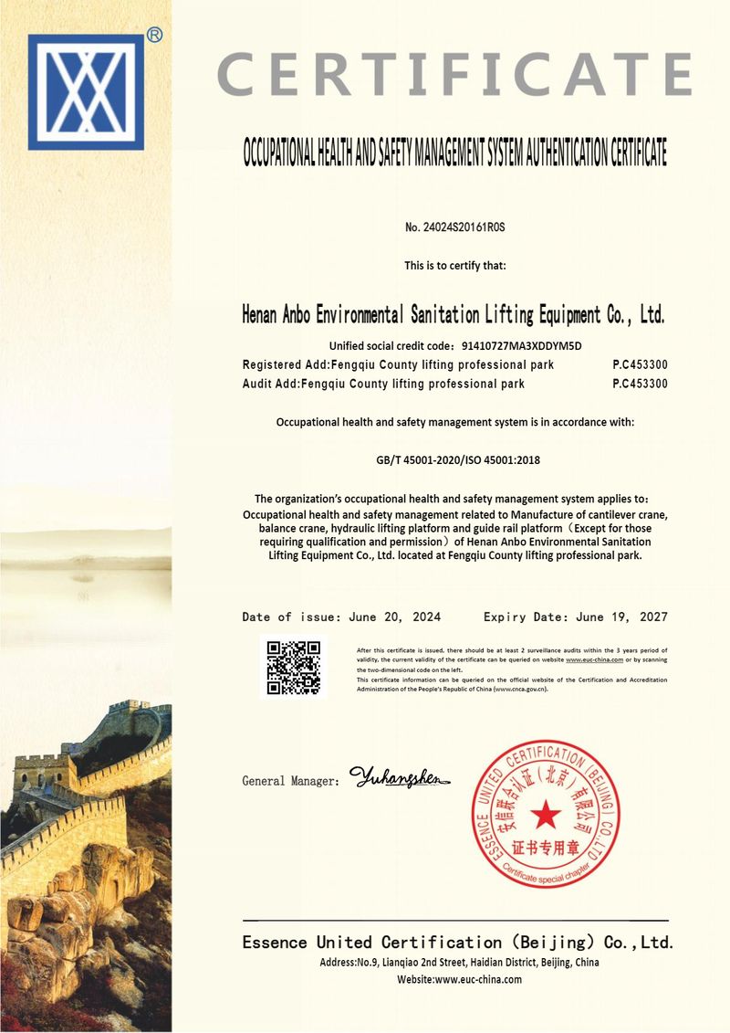 職業(yè)健康安全管理體系認證證書英文版