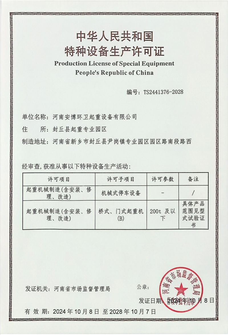 特種設(shè)備生產(chǎn)許可證